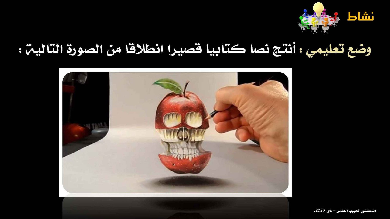 لنأخذ مثالا ملموسا: «إنتاج نص مكتوب انطلاقا من صورة.»