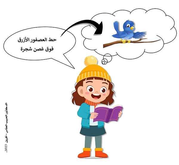 المشهد الأول: سلمى تقرأ: «حط العصفور الأزرق فوق غصن شجرة»